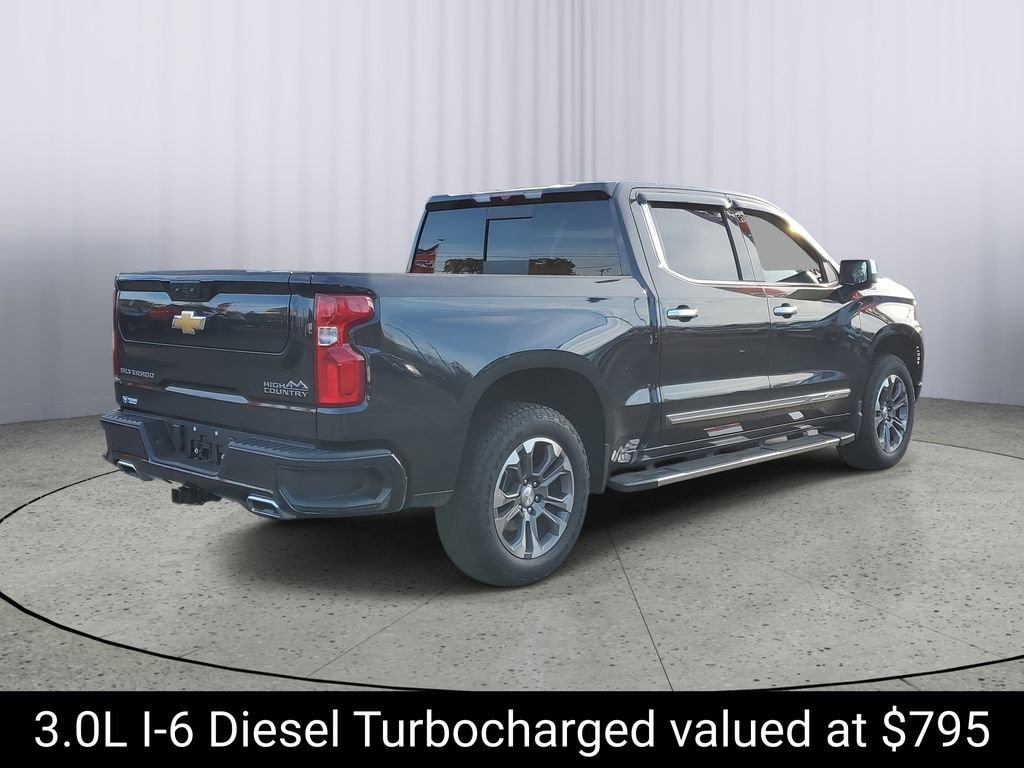 LOCAL TRADE!, CARFAX ONE OWNER!, CLEAN CARFAX!, CREW CAB!, 4WD, Silverado 1500 High Country, 3.0L I6, 10-Speed Automatic, 4WD, Black Leather, 10-Way Power Driver Seat w/Lumbar, 10-Way Power Passenger Seat Adjuster w/Lumbar, 12.3 Multicolor Reconfigurable Digital Display, 120-Volt Bed Mounted Power Outlet, 120-Volt Interior Power Outlet, 2 USB Data Ports, 2nd Row Heated Outboard Seats, Adaptive Cruise Control, Auto-Dimming Inside Rear-View Mirror, Auto-Locking Rear Differential, Bed View Camera, Bluetooth® For Phone, Body-Color Painted Mirror Caps, Chevrolet Connected Access Capable, Chevytec Spray-On Black Bedliner, Chrome Assist Steps, Chrome Recovery Hooks, Color-Keyed Carpeting Floor Covering, Deep-Tinted Glass, Driver Memory, Dual Exhaust w/Polished Outlets, Dual Rear USB Ports (Charge Only), Electric Rear-Window Defogger, Electrical Steering Column Lock, Floor Mounted Center Console, Front Carpeted Floor Mats, Front LED Fog Lamps, Front Rain-Sensing Wipers, HD Surround Vision, Heated Driver & Front Outboard Passenger Seats, Heated Steering Wheel, High Capacity Suspension Package, Hitch Guidance, Hitch Guidance w/Hitch View, In-Vehicle Trailering System App, Integrated Trailer Brake Controller, Keyless Open & Start, LED Cargo Area Lighting, OnStar & Chevrolet Connected Services Capable, Outside Heated Power-Adjustable Mirrors, Perimeter Lighting, Power Front Passenger Windows w/Express Up/Down, Power Front Windows w/Driver Express Up/Down, Power Rear Windows w/Express Down, Power Sliding Rear Window w/Rear Defogger, Power Tailgate, Power Tilt & Telescoping Steering Column, Preferred Equipment Group 3LZ, Rear Carpeted Floor Mats, Rear Cross Traffic Braking, Rear Pedestrian Alert, Rear Wheelhouse Liners, Remote Vehicle Starter System, Safety Alert Seat, SiriusXM w/360L, Standard Tailgate, Steering Wheel Audio Controls, Theft Deterrent System (Unauthorized Entry), Trailer Camera Provisions, Trailer Side Blind Zone Alert, Trailering Package, Ultrasonic Front & Rear Park Assist, Universal Home Remote, Up-Level Rear Seat w/Storage Package, Ventilated Driver & Front Passenger Seats, Wi-Fi Hot Spot Capable, Wrapped Steering Wheel.