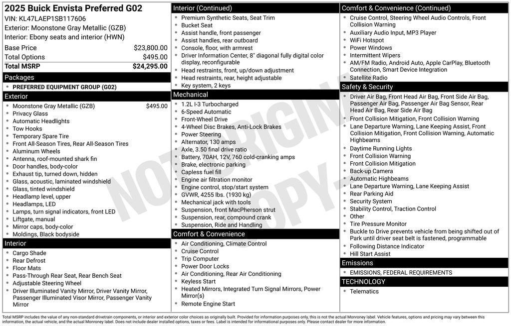 Moonstone Gray Metallic 2025 Buick Envista Preferred FWD 6-Speed Automatic ECOTEC 1.2L Turbo