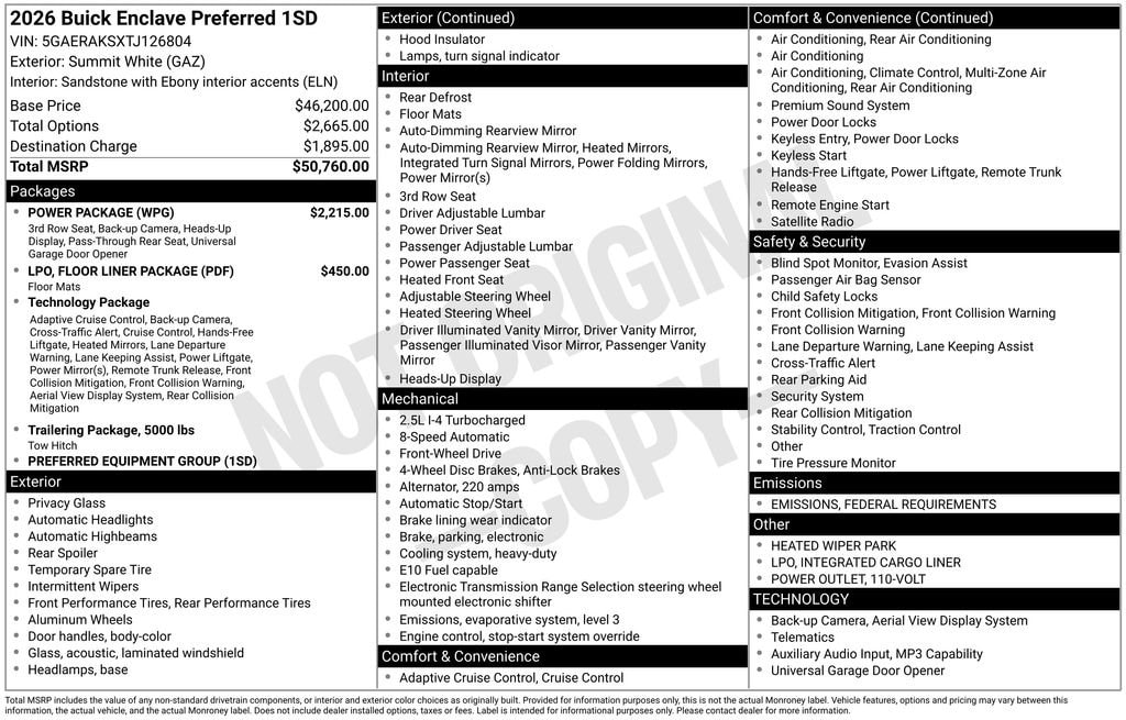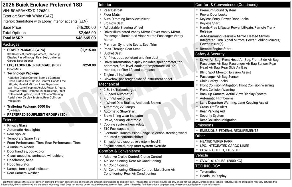 Summit White 2026 Buick Enclave Preferred FWD 8-Speed Automatic 2.5L DOHC FWD.