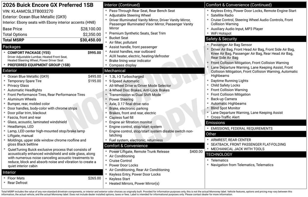 Ocean Blue Metallic 2026 Buick Encore GX Preferred AWD 9-Speed Automatic ECOTEC 1.3L Turbo
