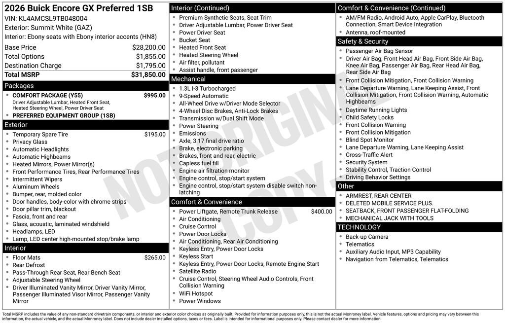 Summit White 2026 Buick Encore GX Preferred AWD 9-Speed Automatic ECOTEC 1.3L TurboRecent Arrival! 26/28 City/Highway MPG