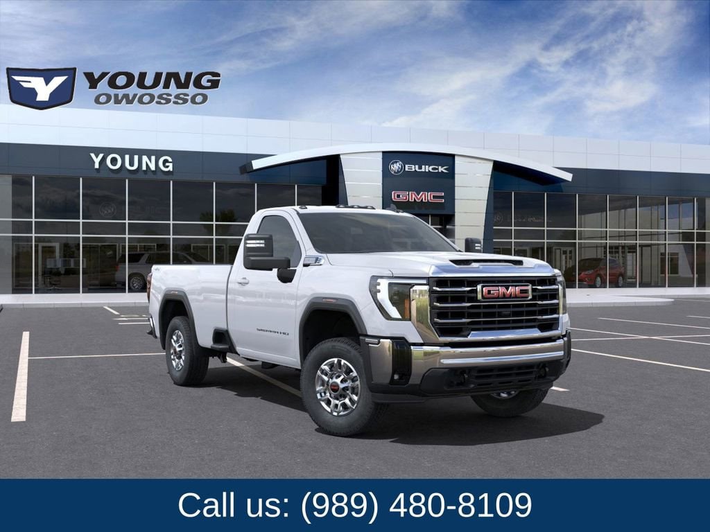 Summit White 2025 GMC Sierra 2500HD SLE 4WD 10-Speed Automatic 6.6L V8 10-Speed Automatic, 4WD, Black Cloth.