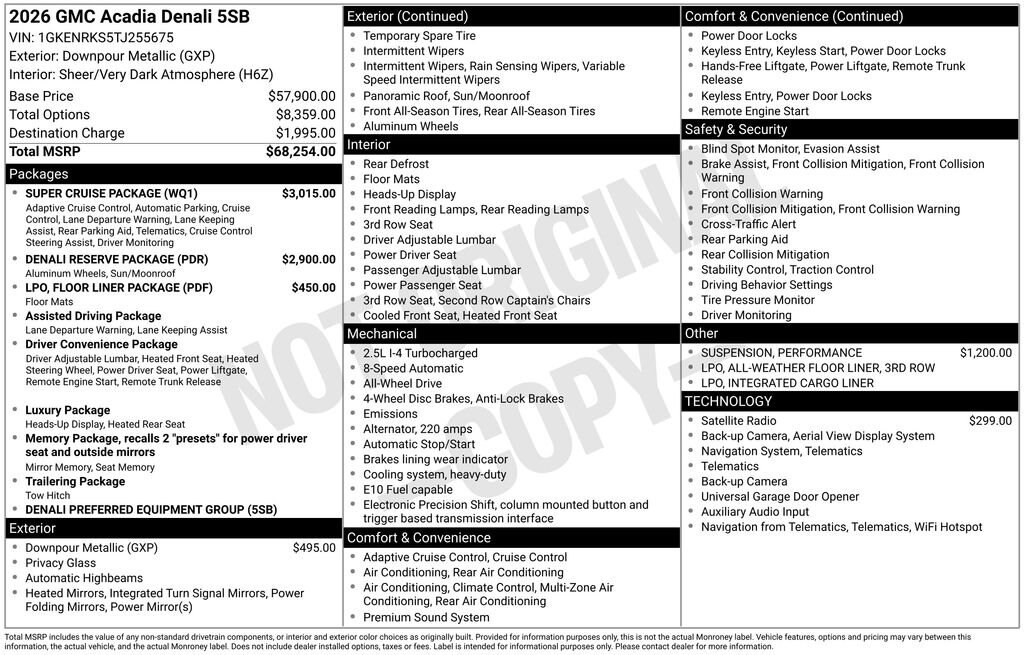 Downpour Metallic 2026 GMC Acadia Denali AWD 8-Speed Automatic 2.5L DOHC AWD, Sheer/Very Dark Atmosphere Leather.Recent Arrival!