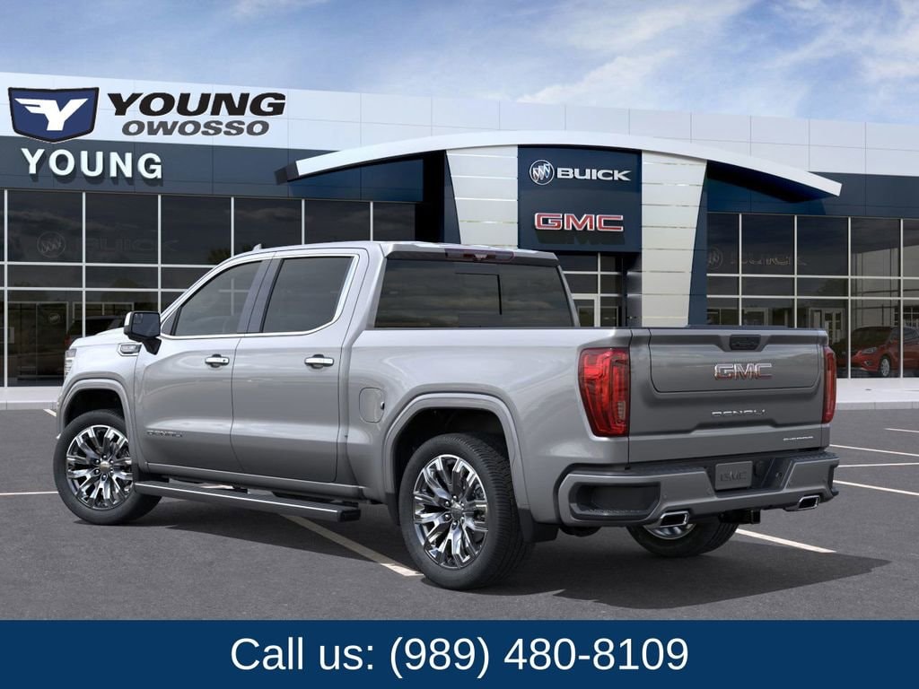 Sterling Metallic 2026 GMC Sierra 1500 Denali 4WD 10-Speed Automatic EcoTec3 6.2L V8 10-Speed Automatic, 4WD, Atmosphere/Brownstone Leather.