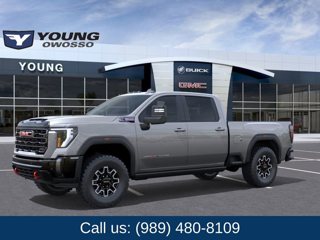 Sterling Metallic 2026 GMC Sierra 2500HD AT4X 4WD 10-Speed Automatic Duramax 6.6L V8 Turbodiesel 10-Speed Automatic, 4WD, Obsidian Rush Leather.