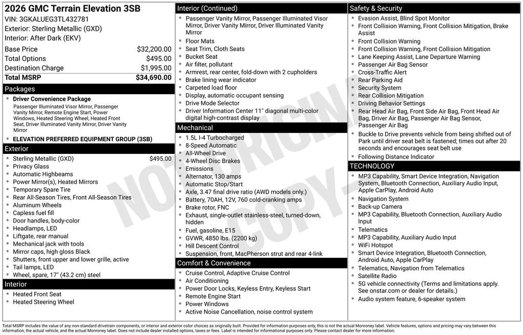 Sterling Metallic 2026 GMC Terrain Elevation AWD 8-Speed Automatic with Overdrive 1.5L DOHC AWD.