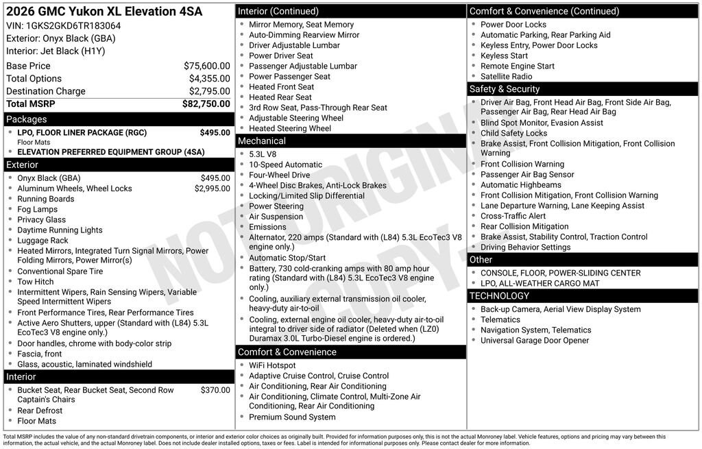 Onyx Black 2026 GMC Yukon XL Elevation 4WD 10-Speed Automatic with Overdrive EcoTec3 5.3L V8 4WD.