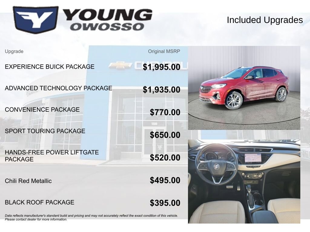 LOCAL TRADE!, CLEAN CARFAX!, AWD, Encore GX Essence, AWD, 18 Aluminum Wheels, Adaptive Cruise Control - Camera, Advanced Technology Package, Automatic Parking Assist w/Braking, Black Exterior Mirror Caps, Black Roof Package, Black Roof Panel, Black Roof Rails, Body Color Rocker Moldings, Body-Color Bodyside Moldings, Convenience Package, Custom Grille, Experience Buick Package, Front Intermittent RainSense Wipers, Hands Free Power Liftgate, Hands-Free Power Liftgate Package, HD Surround Vision, Head-Up Display, Memory Card Receptacle, Power Tilt-Sliding Moonroof, Preferred Equipment Group 1SL, Radio: 8 Diagonal Buick Infotainment System w/Nav, Rear Camera Mirror, Rear Camera Mirror Washer, Rear Park Assist, Red Front & Rear Bumper Protective Molding, SiriusXM w/360L, Sport Front Bumper, Sport Rear Bumper, Sport Touring Badge, Sport Touring Package, Wireless Charging.