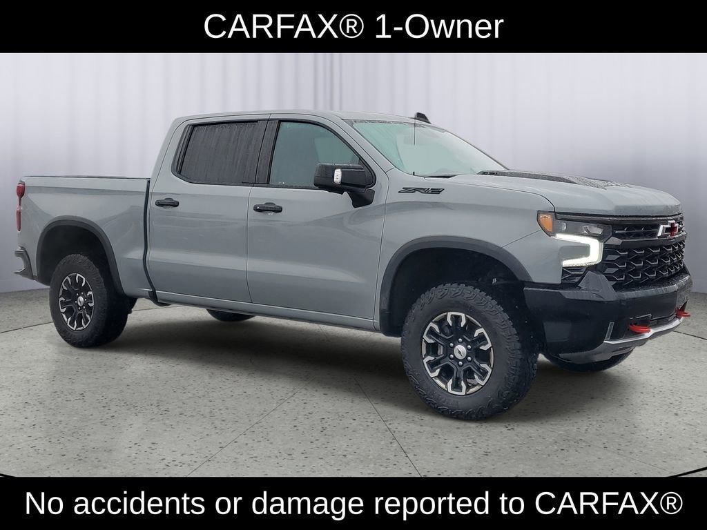 LOCAL TRADE!, CARFAX ONE OWNER!, CLEAN CARFAX!, CREW CAB!, 4WD, Silverado 1500 ZR2, EcoTec3 6.2L V8, 4WD, 10-Way Power Driver Seat w/Lumbar, 10-Way Power Passenger Seat Adjuster w/Lumbar, 12.3 Multicolor Reconfigurable Digital Display, 120-Volt Bed Mounted Power Outlet, 120-Volt Interior Power Outlet, 2 USB Data Ports, 2nd Row Heated Outboard Seats, All-Weather Floor Liner (LPO), Auto-Dimming Inside Rear-View Mirror, Bed View Camera, Black Name Plates (LPO), Black Tailgate CHEVROLET Lettering (LPO), Bluetooth® For Phone, Chevrolet Connected Access Capable, Chevytec Spray-On Black Bedliner, Color-Keyed Carpeting Floor Covering, Dark Essentials Package (LPO), Deep-Tinted Glass, Driver Memory, Dual Rear USB Ports (Charge Only), Electric Rear-Window Defogger, Electrical Steering Column Lock, Electronic Cruise Control, EZ Lift Power Lock & Release Tailgate, Floor Mounted Center Console, Front LED Fog Lamps, Front Rain-Sensing Wipers, HD Surround Vision, Heated Driver & Front Outboard Passenger Seats, Heated Steering Wheel, Heavy-Duty Air Filter, High Gloss Black Mirror Caps, Hill Descent Control, Hitch Guidance, Hitch Guidance w/Hitch View, In-Vehicle Trailering System App, Integrated Trailer Brake Controller, Keyless Open & Start, LED Cargo Area Lighting, Manual Tilt/Telescoping Steering Column, OnStar & Chevrolet Connected Services Capable, Outside Heated Power-Adjustable Mirrors, Performance Red Recovery Hooks, Perimeter Lighting, Power Front Passenger Windows w/Express Up/Down, Power Front Windows w/Driver Express Up/Down, Power Rear Windows w/Express Down, Power Sliding Rear Window w/Rear Defogger, Preferred Equipment Group 3LT, Rear Cross Traffic Braking, Rear Park Assist, Rear Pedestrian Alert, Rear Wheelhouse Liners, Remote Vehicle Starter System, Safety Alert Seat, SiriusXM w/360L, Standard Tailgate, Steering Wheel Audio Controls, Theft Deterrent System (Unauthorized Entry), Trailer Camera Provisions, Trailer Side Blind Zone Alert, Trailering Package, Universal Home Remote, Up-Level Rear Seat w/Storage Package, Ventilated Driver & Front Passenger Seats, Wi-Fi Hot Spot Capable, Wrapped Steering Wheel, ZR2 Suspension Package.